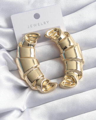 Pirinç Gold Renk Kruvasan Model Kadın Küpe