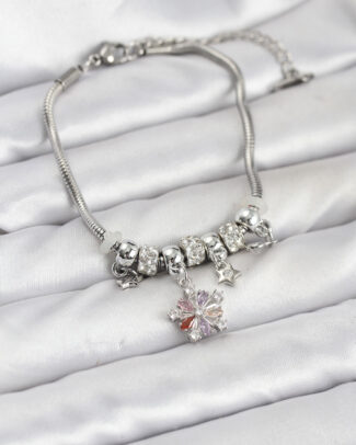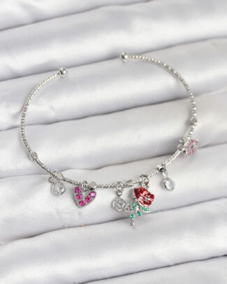 Gül Charmlı Gümüş Renk Pirinç Kadın Bileklik