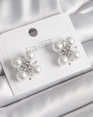 Pirinç Gümüş Renk Zirkon Taşlı İncili Kadın Küpe