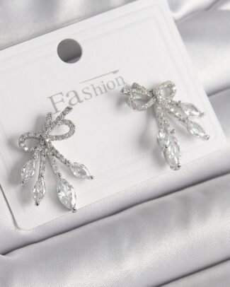 Pirinç Gümüş Renk Zirkon Taşlı Düğüm Model Damla Zirkon Taşlı Kadın Küpe