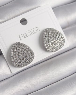 Pirinç Gümüş Renk Zirkon Taşlı Plaka Model Kadın Küpe