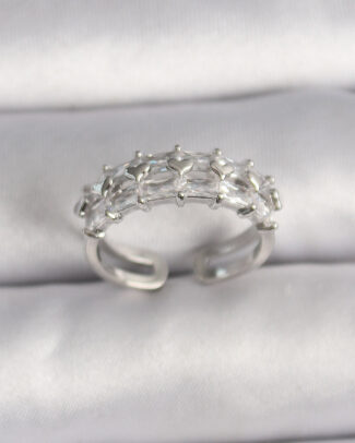Pirinç Gümüş Renk Zirkon Taşlı Ayarlanabilir Yüzük