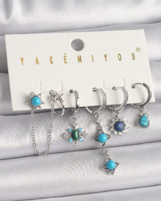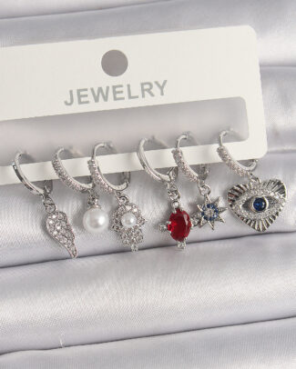 Pirinç Gümüş Renk Zirkon Taşlı Çoklu Figür Kadın Küpe Seti