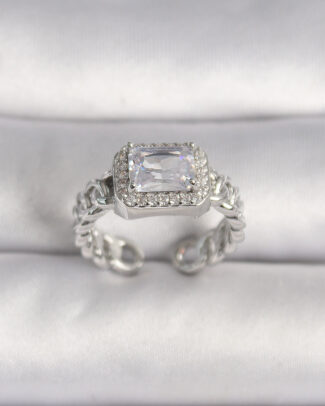 Pirinç Gümüş Renk Ayarlanabilir Zincir Kare Zirkon Taşlı Kadın Yüzük