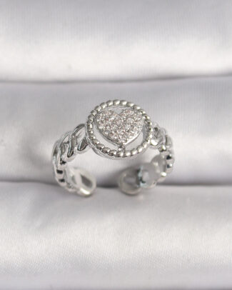 Pirinç Gümüş Renk Zincir Model Zirkon Taşlı Kalp Model Kadın Yüzük