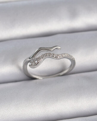 Pirinç Gümüş Renk Zirkon Taşlı Yılan Ayarlanabilir Model Kadın Yüzük