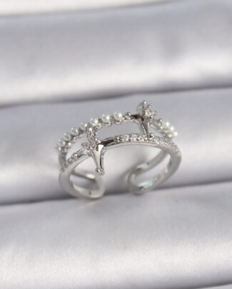 Pirinç Gümüş Renk Ayarlanabilir Zirkon Taşlı Kutup Yıldız İnci Detay Kadın Yüzük
