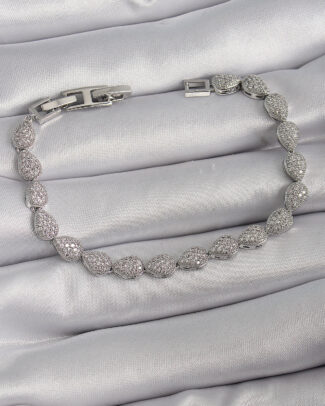 Pirinç Gümüş Renk Zirkon Taşlı Damla Model VIP Seri Kadın Bileklik