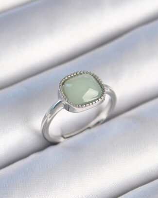 Pirinç Gümüş Renk Yeşil Kare Mineli Kadın Yüzük