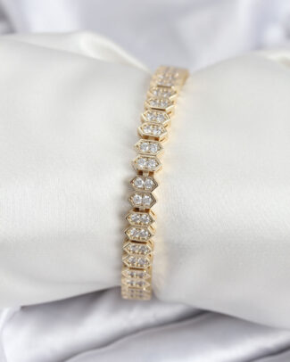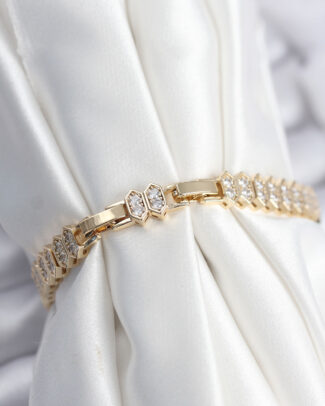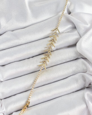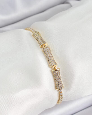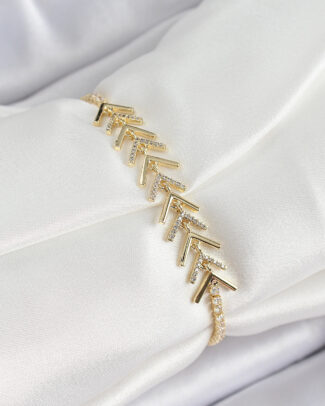 Pirinç Gold Renk Zirkon Taşlı Kemik Model Kadın Bileklik