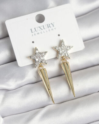 Pirinç Gold Renk Zirkon Taşlı Yıldız Model Çivi Kadın Küpe
