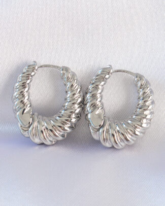 Pirinç Gümüş Renk Tırtık Detay Bombeli Halka Küpe