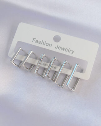 Pirinç Gümüş Renk Dikdörtgen Model Küpe Seti