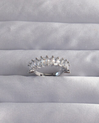 Pirinç Ayarlamalı Gümüş Renk Baget Taşlı Su Yolu Yüzük