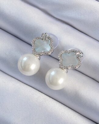 Pirinç Gümüş Renk Zirkon Taşlı Minimal Çiçek Tasarımlı Kadın Küpe