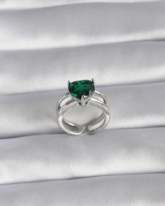 Pirinç Gümüş Renk Yeşil Zirkon Taşlı Tek Taş Model Kadın Yüzük