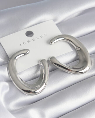 Pirinç Gümüş Renk Oval Model Kadın Küpe