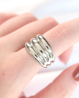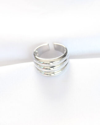 Silver Renk Ayarlanabilir Çizgili Bombe Yüzük