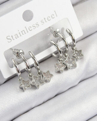 Pirinç Zirkon Taşlı Yıldız Ve Gül Model Gümüş Renk 925 Ayar Gümüş Çivi Kadın Küpe Set