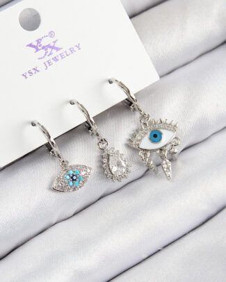 Pirinç Zirkon Taşlı 3’lü Fatma’nın Gözü Model Gümüş Renk Kadın Küpe