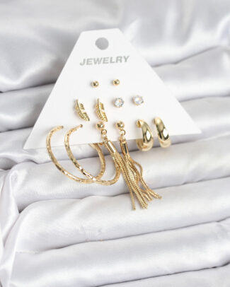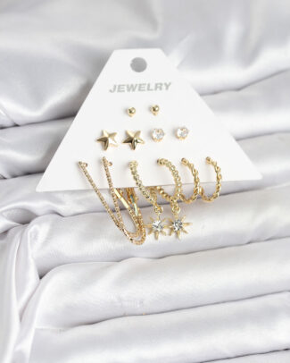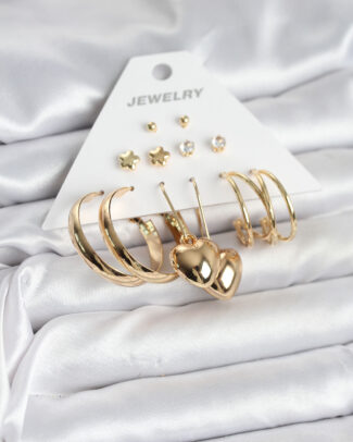 Gold Renk Pirinç 6’lı Kadın Küpe Seti