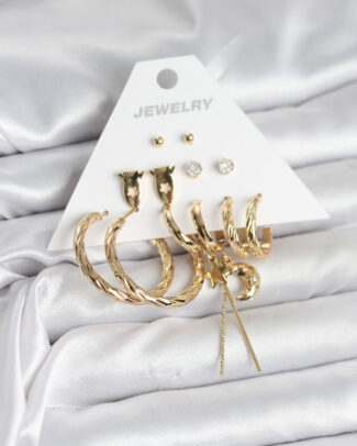 6 Çift Kadın Küpe Seti Gold Renk