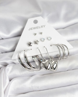Pirinç Gümüş Renk 6 Çift Kadın Küpe Seti