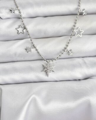 Pirinç Gümüş Renk Zirkon Taşlı Kutup Yıldızı Model Kadın Kolye