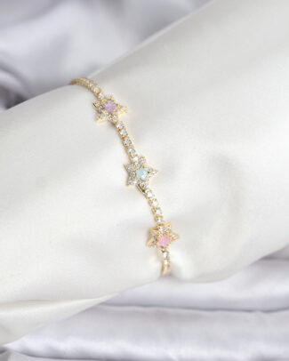Renkli Yıldız Model Zirkon Taşlı Gold Renk Pirinç Su Yolu Kadın Bileklik