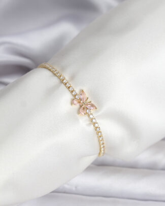 Kelebek Model Zirkon Taşlı Gold Renk Pirinç Su Yolu Kadın Bileklik