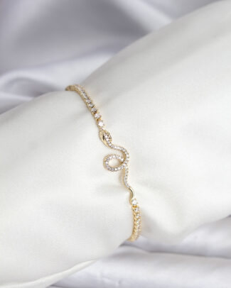 Yılan Model Zirkon Taşlı Gold Renk Pirinç Su Yolu Kadın Bileklik