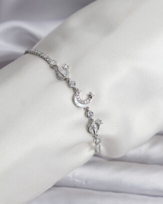 Charmlı Model Zirkon Taşlı Gümüş Renk Su Yolu Kadın Bileklik