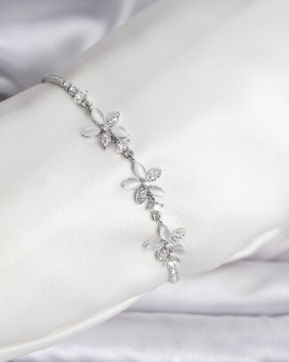Çiçek Model Zirkon Taşlı Gümüş Renk Pirinç Su Yolu Kadın Bileklik