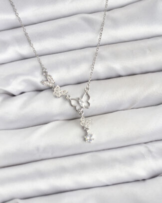 316L Çelik Zincir Gümüş Renk Kelebek Model Kadın Kolye