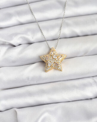 316L Çelik Zincir Gümüş Renk Zincirli Gold Yıldız Model Kadın Kolye
