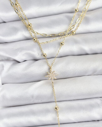 Pirinç Gold Renk Kutup Yıldızı Detaylı 3’lü Kombin Kadın Kolye