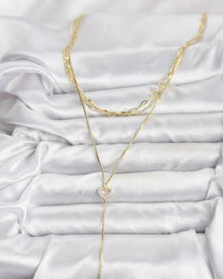 Pirinç Gold Renk Kalp Detaylı 3’lü Kombin Y Kadın Kolye