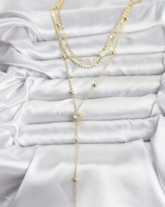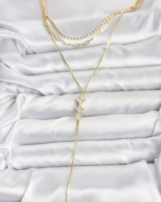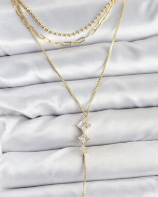 Pirinç Gold Renk Zirkon Taş Detaylı 3’lü Kombin Y Kadın Kolye