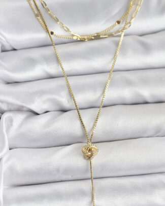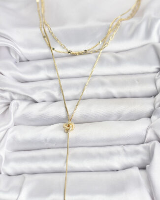 Pirinç Gold Renk Düğüm Model Detaylı 3’lü Kombin Y Kadın Kolye
