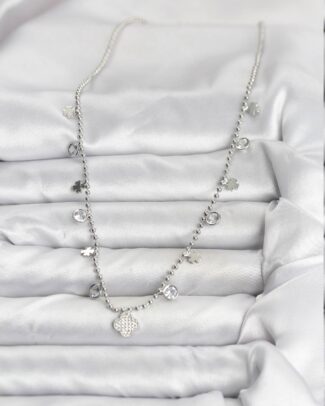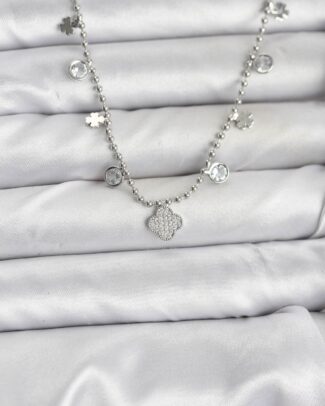 Pirinç Gümüş Renk Yonca Model Kadın Kolye