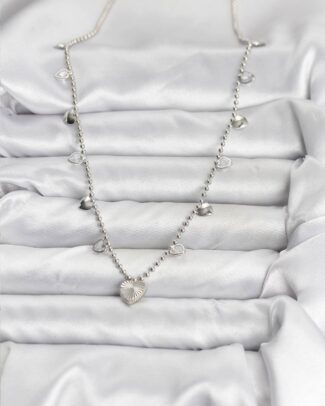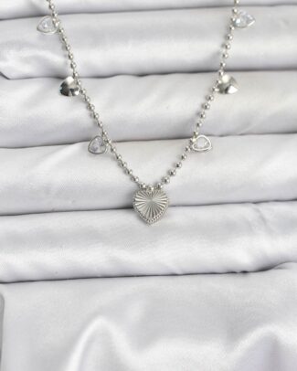 Pirinç Gümüş Renk Kalp Model Kadın Kolye