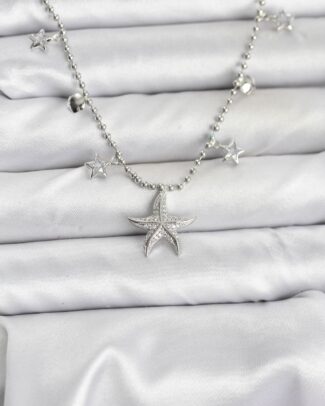 Pirinç Gümüş Renk Zirkon Taşlı Deniz Yıldızı Model Kadın Kolye