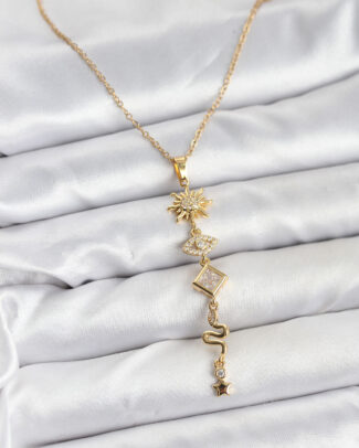 316L Çelik Zincir Gold Renk Güneş ve Enerji Model Kadın Y Kolye