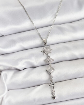 316L Çelik Zincir Gümüş Renk Güneş ve Enerji Model Kadın Y Kolye