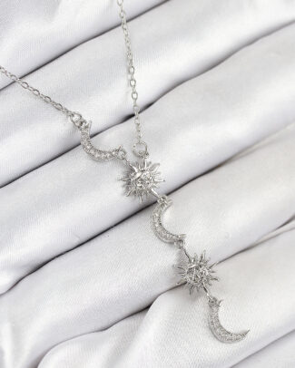 316L Çelik Zirkon Taşlı Güneş Ve Ay Model Gümüş Renk Kadın Kolye