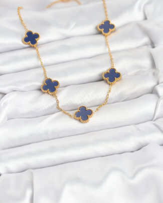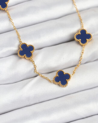 316L Çelik Zincir Gold Renk Lacivert Yonca Kadın Kolye