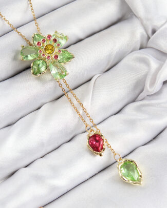 VIP Pirinç Zirkon Taşlı Çiçek Model Gold Renk Asansörlü Kadın Kolye