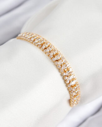 VIP Pirinç Zirkon Taşlı Parçalı Zincir Model Gold Renk Kadın Bileklik