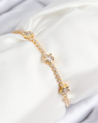 VIP Pirinç Zirkon Taşlı Çiçek Model Gold Renk Kadın Bileklik