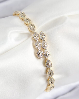 VIP Pirinç Zirkon Taşlı Sıralı Damla Model Gold Renk Kadın Bileklik